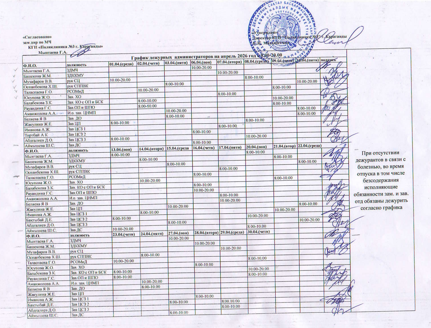 ГРАФИК ДЕЖУРСТВ И МЕДОСМОТРОВ